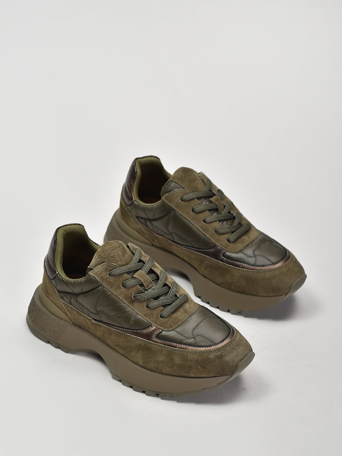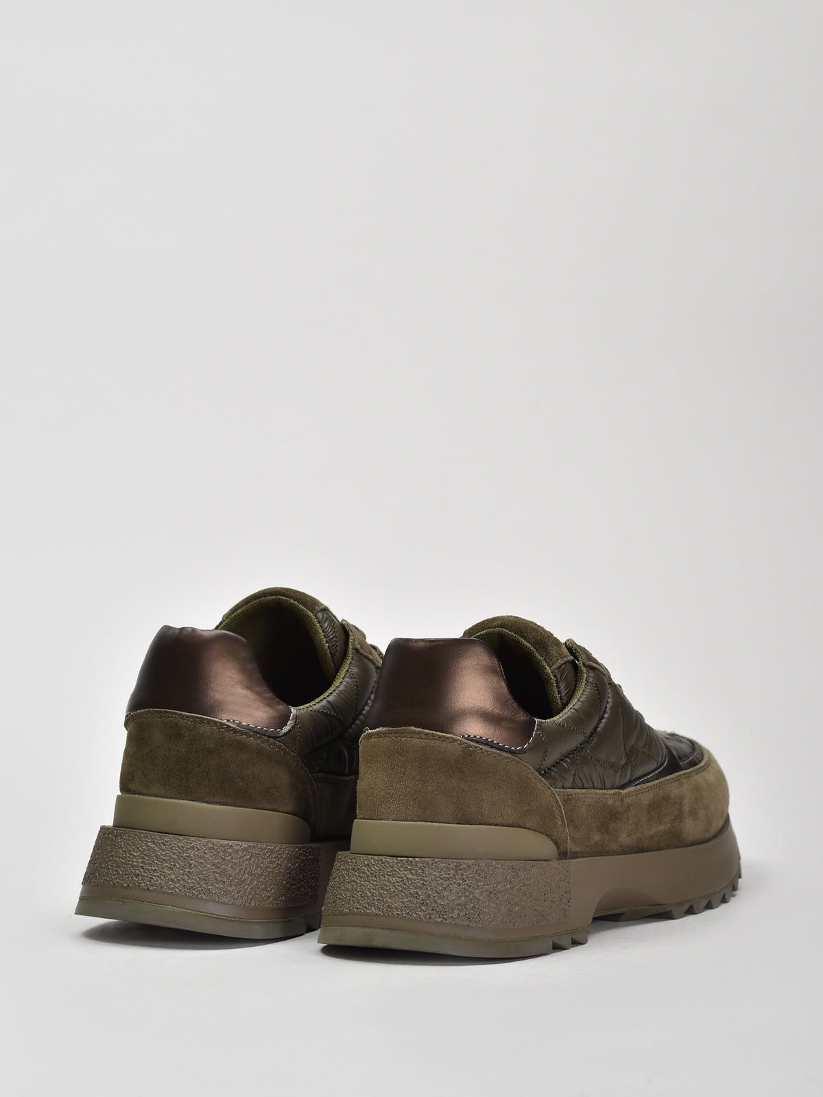 Suede & Textile Suede Runnies, Olive Green